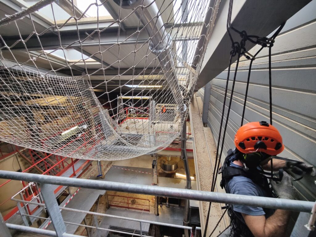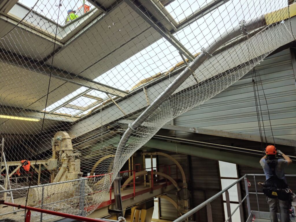 Installer un filet de sécurité, sur une charpente métallique, sous le bacacier, avant de commencer le démontage du toit. La réponse à plusieurs problématiques :