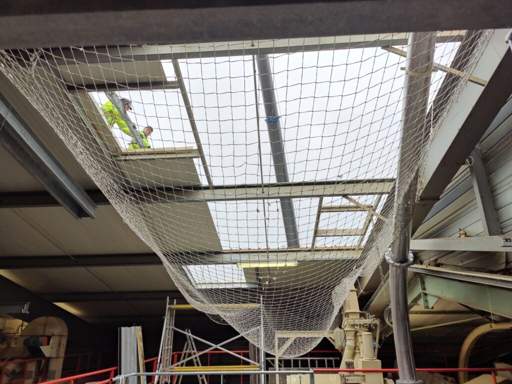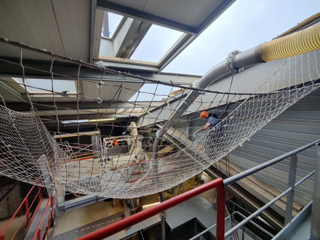 - Protection contre la chute d’objets : Lors du démontage (outillage, morceaux de bacacier), le filet empêche ces éléments de tomber sur des personnes, des machines ou des matériaux stockés en dessous.