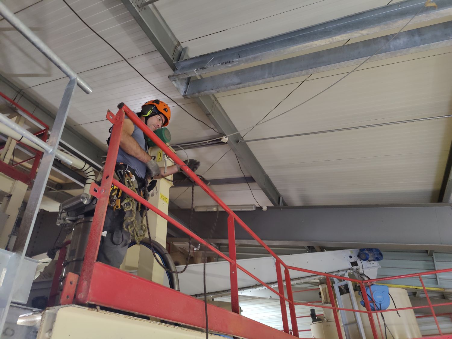 Installation d'un filet de sécurité au plafond, ancrages sur charpente métallique à Mornac