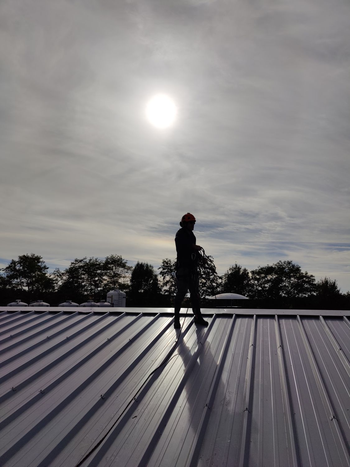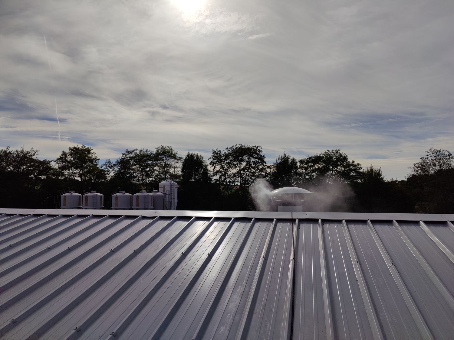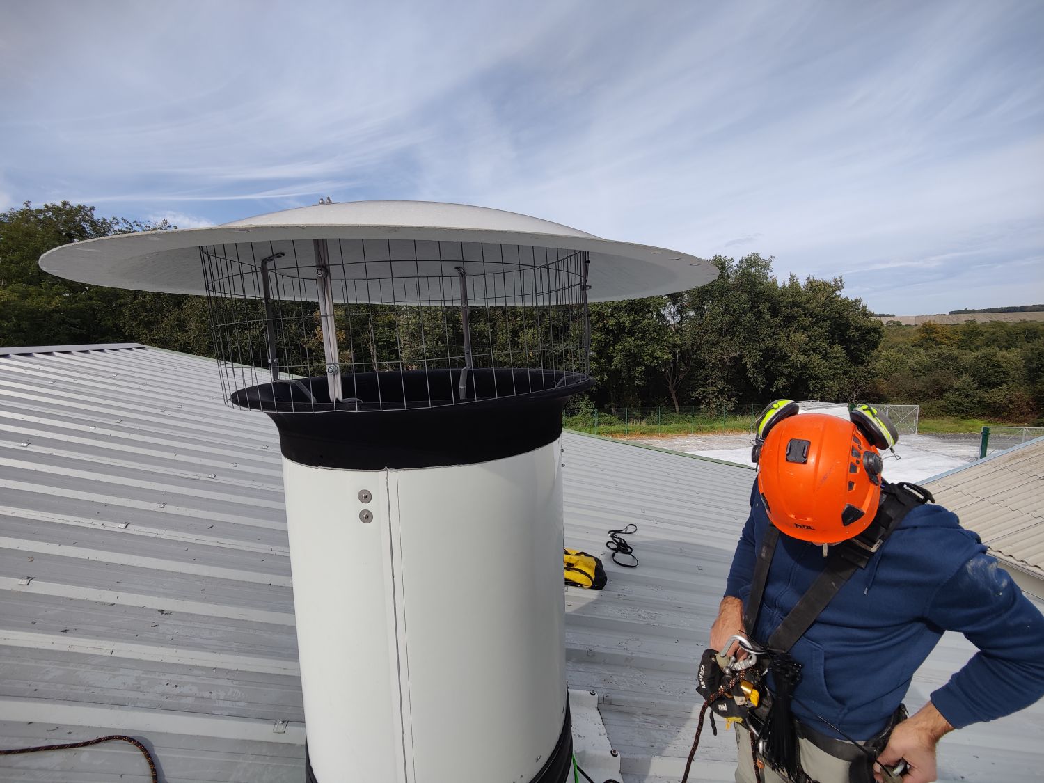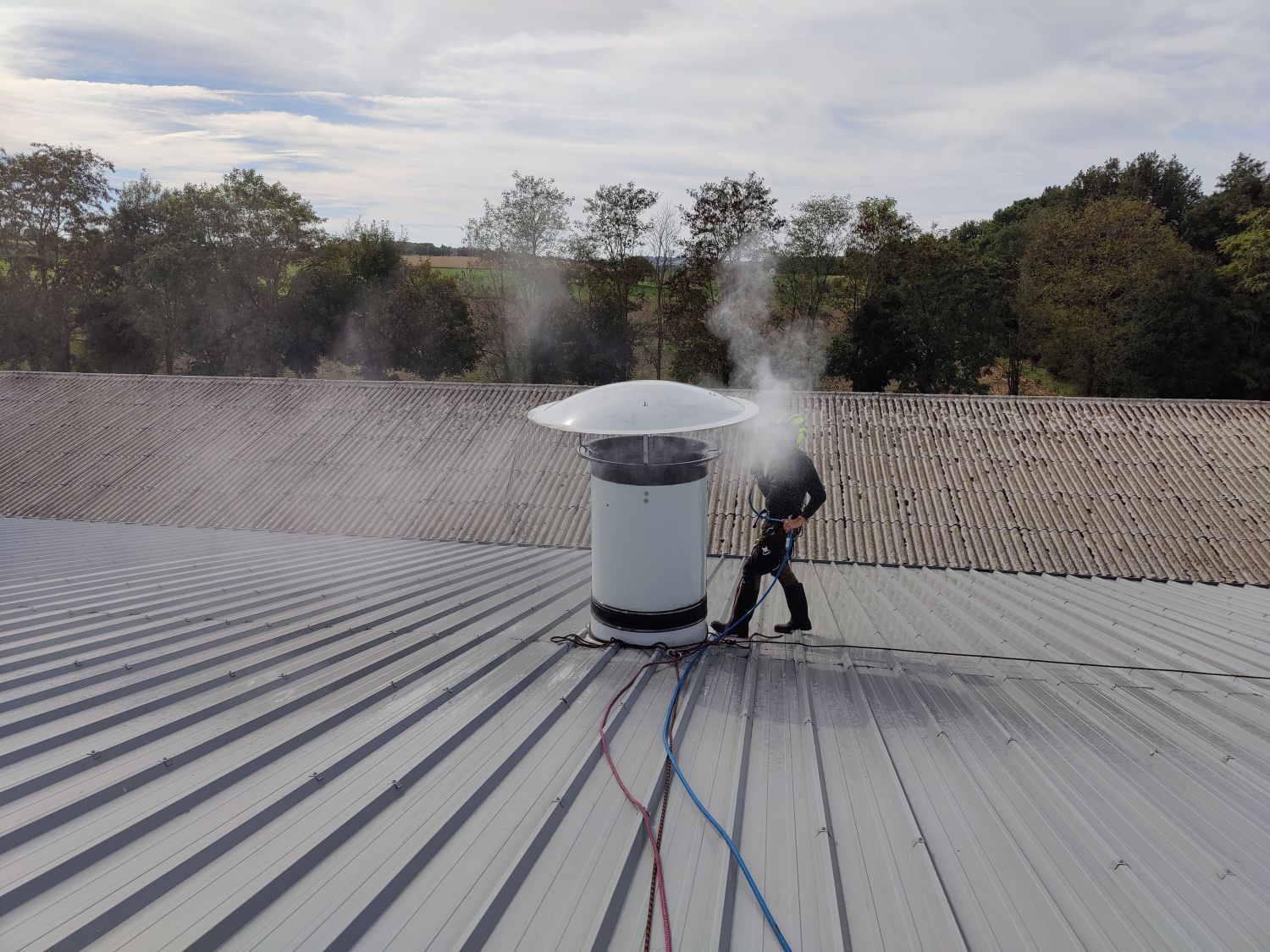 Nettoyage d'extracteurs d'air sur toit de hangar agricole à Châtellerault