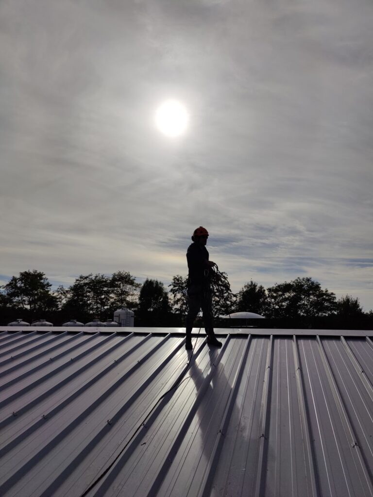 - Il va chercher la charpente métallique (pannes, poutres) sous la couverture, ou des points de structure fiables sur le pourtour du toit.